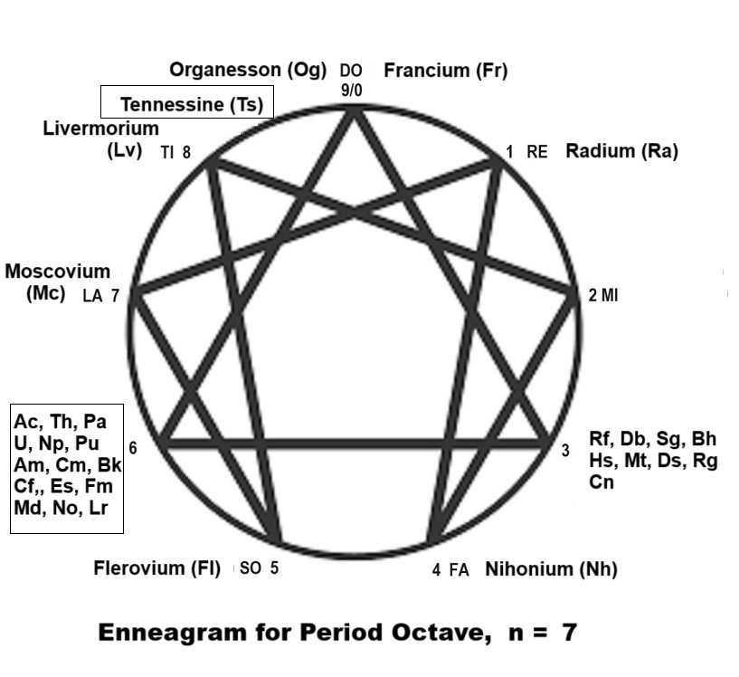 The Standard Periodic Table of Elements can be rearranged using all the fractal groups of elements such as those represented in white color, yellow color pinkish-brown color and purple color and organized them into the fundamental octave of elements, the 1st lateral octave of elements (the Transition elements) and 2nd lateral octave of elements (the Lanthanides and the Actinides) both occurring at the MI-FA Interval or in the transition elements. Those elements in the 8 fundamental octave periods at Do, Ti, La, So, Fa, Mi, Re and Do Ray of Creation’s stopinders (n = 1 - 8) both represented by the white to the yellow group of colors with 2 fundamental diad of yin-yang elements in period 1 (n =1) and in period 8 (n = 8) represented in white color as Do above and Do below stopinders and both occur at the Ti-Do Interval above and below. The 1st lateral octave of elements occurs at the Mi-Fa Intervals of the ascending aufbau horizontal octave (Do, Re, Mi, Fa, So, La, Ti and Do) as 1st group of transition elements represented by the pinkish-brown color from period 4 to period 7 (n = 4 to n = 7) and occurs again in the 2nd lateral octave of elements as the 2nd group of inner transition elements of the lanthanides in period 6 (n = 6) and actinides in period 7 (n = 7). Putting everything together we have a unified Fractal Octaves of the Standard Periodic Table of Elements. Reasoning along this logic, active to passive atoms from active Hydrogen (H1) through passive Helium (He2) in period 1 at Do-stopinders above and from the unknown active element (X119) and the unknown passive elements (X120) in period 8 at Do-stopinders below must close the periods into a state not necessary elements as the concluding ‘neutral state’ which is the force for the further fillings of protons and electrons of the ascending atoms, thus it should be obeying the law of triad. The further development or ascending of atoms' auto-aufbau suborbital electron filling process from Lithium (Li3) through Oganesson (Og118) from period 3 to period 7 (n =3 -7) would obey the law of octave. The triad law of forces - active, passive and neutral forces - and the octave law of stopinderation (Do, Ti, La, So, Fa, Mi, Re and Do) permeate throughout the whole aufbau or construction of the universe’s elements or atoms. All the Elements in all the Rays of Creation (Fractal Octave Periodic Table of Elements). This Fractal Method is based on the application of the Law of Octave and its MI-FA and the TI-DO Intervals, and proves the law of octave and its intervals is the way these elements stopinderated through octave dynamics; and NOT through various geometrical designs and constructs or shallow diagrams as formal logical conceptual convenience. In the octave dynamics of the groups along horizontally within the Period Octave, the 1st Transition Elements and the 2nd Transition Elements are filled by the B groups of elements horizontally along the octave dynamics of the groups beginning from Period 3 through Period 7 (n=3 through n=7), and within each period at the Mi-Fa Interval of the octave dynamics of the groups. The groups are: Group 1A (Do), Group 2A (Re), Group 3A (Mi), /Mi-Fa Interval/Group 4A (Fa), Group 5A (So), Group 6A (La), Group 7A /Ti-Do Interval/Group 8A (Do). There 4 sets of Group B 1st Transition Elements (each 10 elements) filling the Period 3 through Period 7. However, also at the Mi-Fa Interval of 2 sets of Group B 2nd Transition Elements (each 14 elements) begin the filling from Period 6 through Period 7. These are the double-octave dynamics of Lanthanides (starting at Period 6 and the double-octave dynamics of the Actinides (starting at Period 7. There is an increasing Fa-So-La-Ti aberration of instability along the Vertical Period Octave (n = 4 through n = 7) due to increasing number of protons in the nucleus and electrons in the increasing-sized atoms of the 1st Transition Elements at n = 4 (Fa) and n = 5 (So) in the d-block and the 2nd Transition Elements at n = 6 (La) and n = 7 in the f-block as well as along the Horizontal Group Octave in these two d and f blocks. The f-blocks are aberrating in the most severe forms and unstable with their nucleus and orbitals highly susceptible to excitation - nuclear instability and orbitals absorbing and releasing electromagnetic qubits, waves and even psyche (cosmic properties) in a Particle-Wave-Psyche Triad Principle beyond the Particle-Wave Duality Principle. Especially with the Actinide octaves, being the highest 2nd level of the 2nd Transition Elements, they are truly radioactive and creator of chaos to the behavior of all the being-psyche hydrogens (cosmic properties) folded dimensionally (12-D) into them everywhere in the (our) Ray of Creation - but difficult to unfold and control them because of this spatial-temporal nature of the Quantum Octave. There is also an increasing Fa-So-La-Ti aberration of instability along the Horizontal Group Octave (Group 3A (Fa), 4A (So), 5A (La) and 6 (Ti) and the 7A (Ti-Do Interval)) immediately before the completion of proton-electron fillings at the 8A group (thus ending Point 9/'Do') of the Horizontal Group Octave of Period 1 (n =1) on-leap to Group 1A (starting of proton-electron filling again at Point 0/'Do') of the next Period 2 (n = 2) in the p-block due to the same reason of increasing number of protons in the nucleus and electrons in the atoms as the atom size increase along p-block which are not transition elements but rather because they (atoms) are in the Fa-So-LA-Ti positions in the Horizontal Group Octave. Where Point 9 ends, Point 0 starts and both '9', '0' and 'Do' ends and start the enneagramic cycle in at the same point to generate a new enneagram cycle.