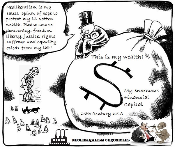 Neoliberalism Political Economy Project (1978-1980-2001) The whole body of the Great Sociocosmic Being regularly experiences an ascending-descending gravity-center focus to heal itself, preventing illness, maintaining inner harmony and ensuring peaceful presence. Here in 'neoliberalism' so-called by these three-brained beings on mother Earth's surface experiences a gravity-center focus descending to capitalistic MI-FA Interval after a period of Soviet and Keynesian Political Economy passing-by where gravity-center focus has ascended to socialistic TI-DO Interval. The future or post neoliberalism is likely to ascend back to socialistic TI-DO Interval due to severe wealth inequality negative consequences of neoliberalism and the emergence of pro-TI-DO Interval advanced technocosmic instruments of production such as high-speed supercomputers, Big Data, internet, 5G, cashless economy, high-speed logistics, high-speed central planning, etc. I shed tears for the neoliberal opioid effects of democracy, freedom, civil liberty, justice, human rights, universal suffrage and equality in quotation mark of a secular civilization on the ‘factories’ which implant ‘formatory apparatus of the mentation’ into the body of man in the form of educational exploits, a sociological slavery in society for capitalistic profit. I also shed tears for the holy civilization of yet an earlier opioid effects of love, hope, faith and conscience also in quotation mark of the cultural ‘institutions’ which implant ‘formatory apparatus of the emotion’ into the body for cultural exploits yet another socioemotional slavery in society for this same gain. I also shed tears for the pseudo-neosocialism opiod effects of HEIGRENS all trapped in quotation mark and partialities on the sheep skin covering a hungry wolf beneath.