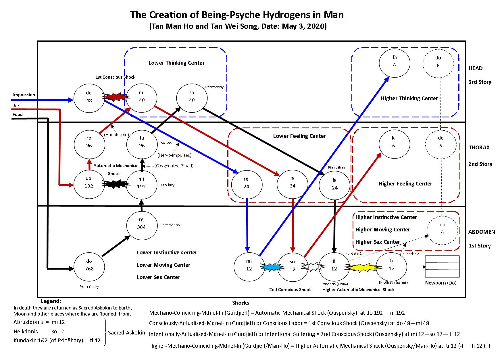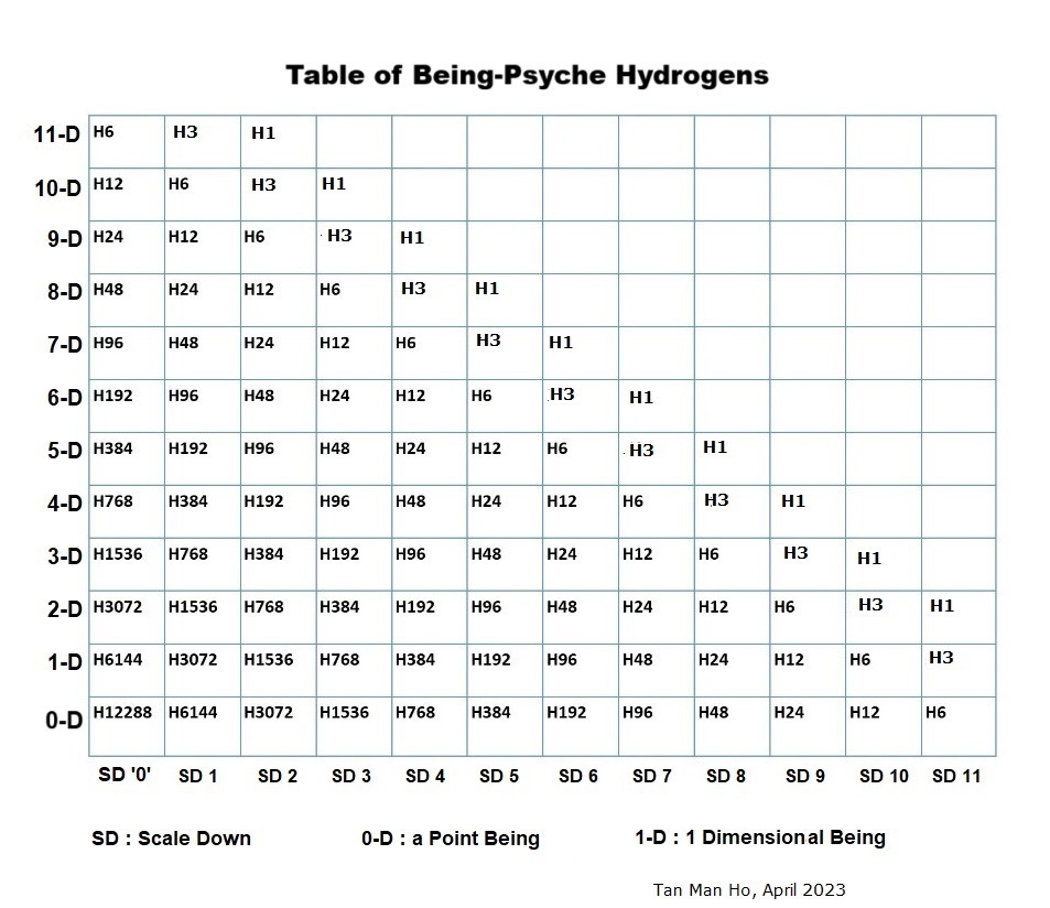 THE PERIODICITY OF BEING-PSYCHE HYDROGENS IN MAN, ITS PROPERTIES AND FORMS (HEGELIAN FORMS AND OCTAVE ANALYSIS) By Professor Dr. Tan Man-Ho (Chen Wanhe) (An excerpt from the original work, Real World Views, Book 20, by Professor Dr. Tan Man-Ho entitled, "The Sociocosmic Unbecomings, The Sociocosmic Stopinder Therapeutic Methods and The Final Exit of the Great Wise Grandson of Beezlebub," July 1996 ~ May 1997 Discourses, Chapter 2, Section A & B: "The Periodicity of Being-Psyche Hydrogens in Man, Its Properties and Forms (Hegelian Forms and Octave Analysis)," pp. 51~58)