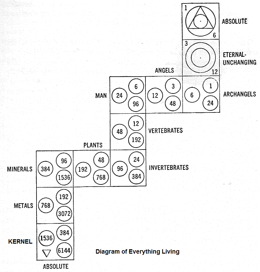 3. Man can produce H96, H24 and H6 collectively and having them dimensionally folded and stored in his quantum octaves, also collectively. The WORK is to produce these being-psyche hydrogens in greater amounts and to harmonize their individual and full sociotechno-civilizational spectrum in collective functions. 4. Both the Dimension folding and Step Down storage is done through the Particle-Wave-Psyche Triadic Principle (the phenoumenal of both Outer World-Inner World Observing); however, the Particle-Wave Diadic Principle (the phenomenal of only Outer World Observing ) of traditional Physics is only an incomplete principle! 5. All the being-psyche hydrogens (H1 - H12288) are folded into the dimensions (D) and stored scale-down in scale-downs (SD) at the 1st Lateral Octave of Eternity Dimensions at the Ti-Do Interval and at the 2nd Lateral Octave of Timespace Dimensions at the Mi-Fa Interval through a Time-Space and Consciousness (C) LINKPIN at the "So-La Interval" in the framework of the Fundamental and Lateral Quantum Octaves, the latter is found in the Eternity-Timespace-Consciousness Continuum.