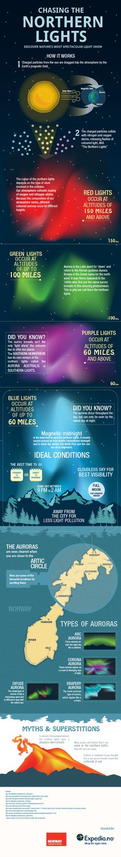 1 An Anonymous in aquarian tone said: “ The aurora borealis (the Northern Lights) and the aurora australis (the Southern Lights) have always fascinated mankind, and people even travel thousands of miles just to see the brilliant light shows in the earth's atmosphere. The auroras, both surrounding the north magnetic pole (aurora borealis) and south magnetic pole (aurora australis) occur when highly charged electrons from the solar wind interact with elements in the earth's atmosphere. Solar winds stream away from the sun at speeds of about 1 million miles per hour. When they reach the earth, some 40 hours after leaving the sun, they follow the lines of magnetic force generated by the earth's core and flow through the magnetosphere, a teardrop-shaped area of highly charged electrical and magnetic fields. As the electrons enter the earth's upper atmosphere, they will encounter atoms of oxygen and nitrogen at altitudes from 20 to 200 miles above the earth's surface. The color of the aurora depends on which atom is struck, and the altitude of the meeting."